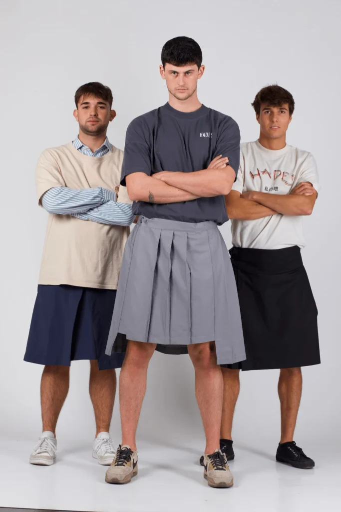 Daves became more widely known in Spain when the comedy radio show “La Vida Moderna” – hosted by David Broncano, Quequé and Ignatius Farray – appeared wearing their skirts on air. The founders had noticed a recurring comment: many men said they would like to wear a skirt but did not dare, especially in the summer heat, so they sent skirts to the presenters as a concrete, visible example. The appearance sparked discussion about comfort, new masculinities and why a skirt should be seen as less “male” than trousers, exactly the stereotypes Daves wants to challenge. For the brand, this moment confirmed there is a real audience for an everyday, non‑theoretical men’s skirt.