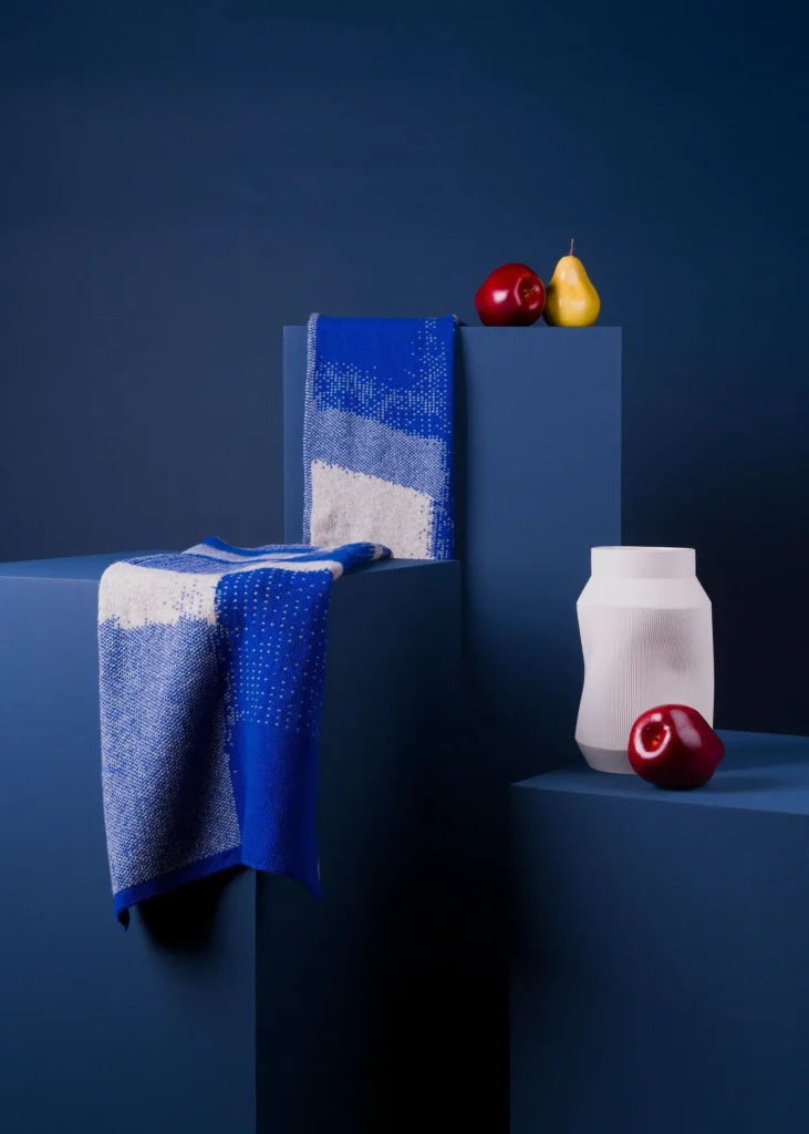 Griet Depoorter began experimenting with a knitting machine during evening hours while working as an architect. Her passion deepened through fashion studies at SASK Academie in Sint-Niklaas, inspiring her to launch Wolvis in late 2013 with her first geometric-patterned scarves in carefully chosen colours. In 2016, she made the courageous decision to step away from architecture entirely to focus on the brand. What sets Wolvis apart is Griet’s unwavering commitment to local production. Despite opportunities to relocate manufacturing to countries with lower labour costs, she has maintained her partnership with the Waregem knitwear factory for over a decade, valuing the close relationships and transparency that Belgian production affords.