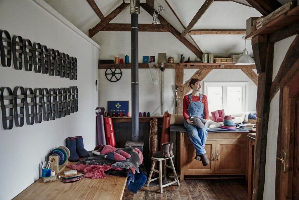 Most sheepskin boots are made in a factory, somewhere far away, and designed to last one or two winters. Xanthe Anna makes every single pair herself, by hand, in a small workshop in Wales — using ethically sourced sheepskin and recycled soles that are strong enough for the outdoors. When a pair wears down, you don’t throw them away — you send them back for repair.
